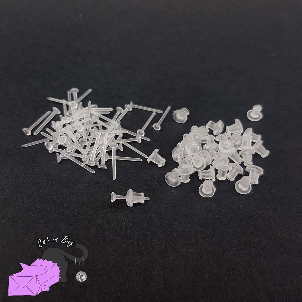 50 coppie (100 pezzi) basi in plastica per orecchini a perno