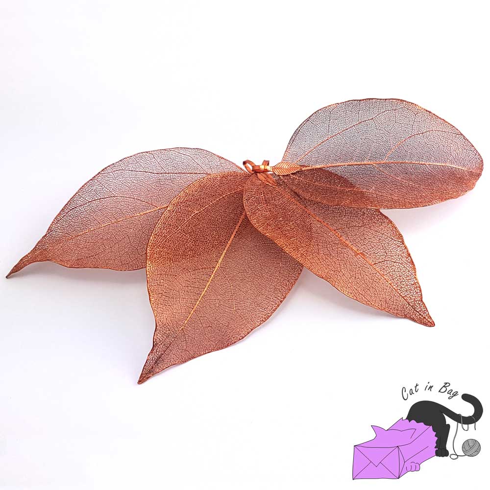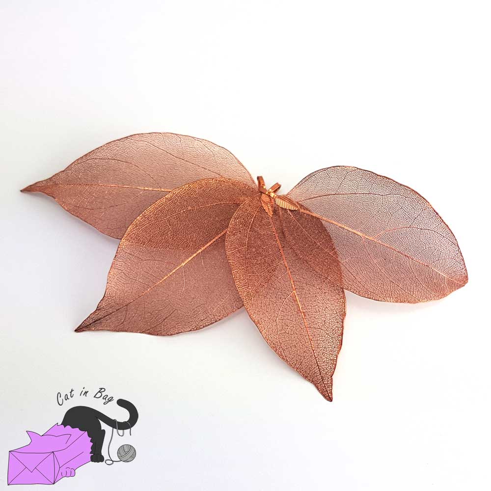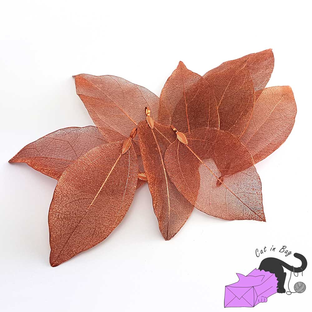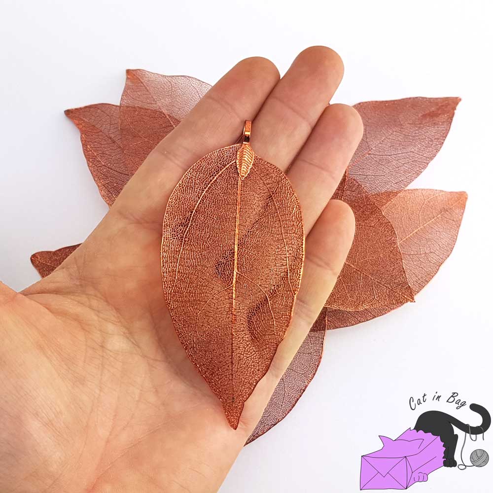 Ciondoli con foglie vere placcate in ottone color rame rosso anticato